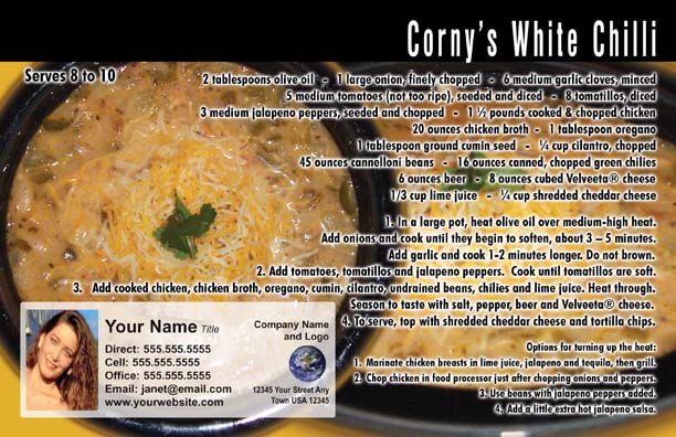 All recipe cards have the same standard back unless noted otherwise.